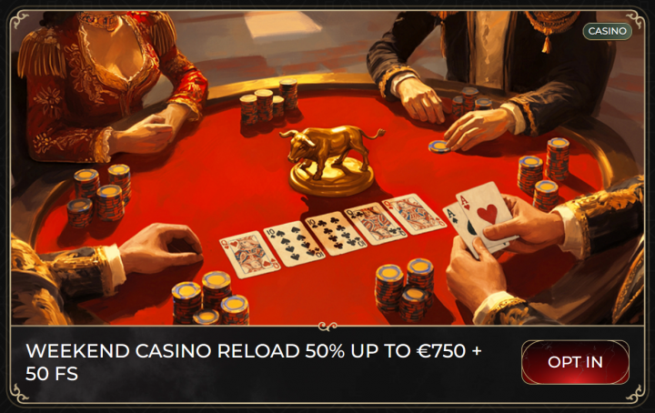- Reload Bonus am Wochenende - 50% bis zu 750€ und 50 Freispiele