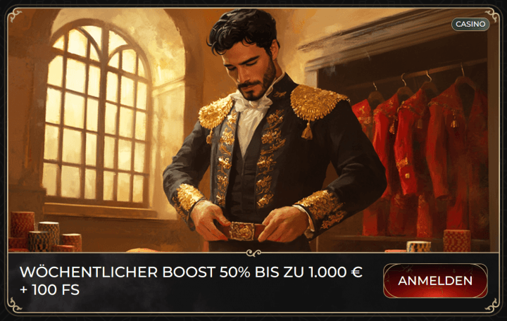 Jede Woche von Montag bis Donnerstag kannst du dir mit einer Mindesteinzahlung von 20€ einen Reload Bonus im Casina Casino abholen.