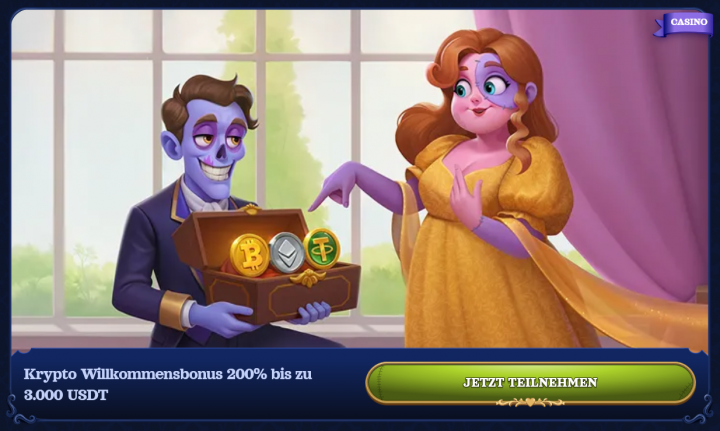 - Krypto Casombie Willkommensbonus – 200% bis zu 3.000 USDT