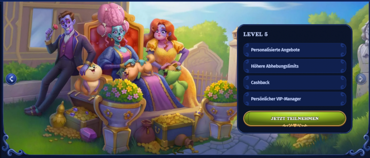 Es werden dabei mehrere Stufen angeboten, sodass man mit dem Fortschritt auch von mehr Privilegien profitieren kann. Hierunter fällt einmal das wöchentliche Cashback ab der 3. Stufe, aber auch ein persönlicher Ansprechpartner. Zusätzlich werden individuelle Boni angeboten und du kannst höhere Auszahlungslimits nutzen, die das Spielerlebnis optimieren.