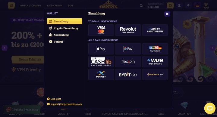 Emperia Casino – alle Informationen zu den Ein- und Auszahlungen