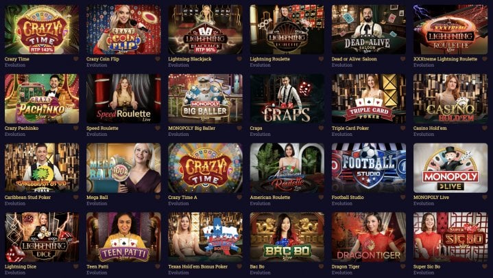 Crazy Time, Monopoly Live, Monopoly Big Baller, Dead or Alive Saloon Live