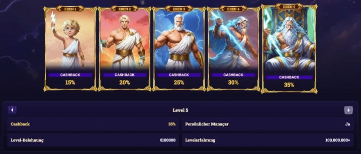 | Level | Cashback | Level-Up Bonus | VIP-Manager |