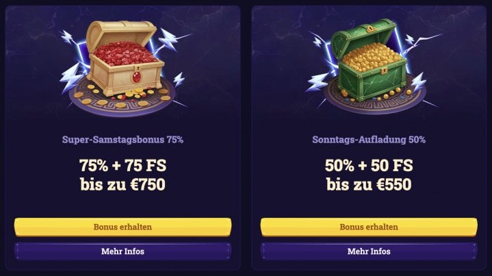 - Super 75% Bonus am Samstag bis zu 750€ und 75 Freispiele