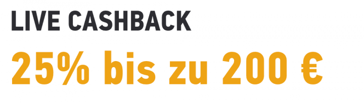 - Live Casino Cashback – 25% bis zu 200€