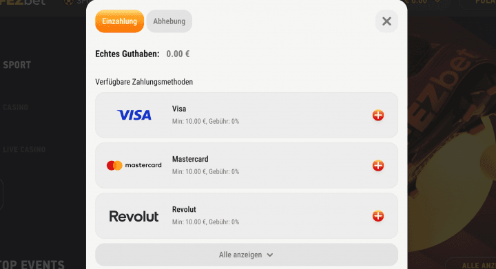 Verfügbare Einzahlungsmethoden im FEZbet Casino:
