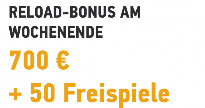 - Freitag bis Sonntag – Reload-Bonus mit 50% bis zu 700€ und 50 Freispielen