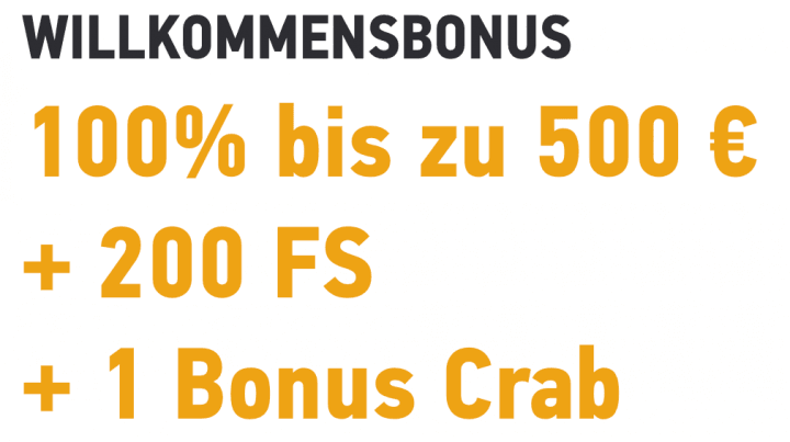 - Casino Neukundenbonus – 100% bis zu 500€ und 200 Freispiele sowie 1 Bonus Crab