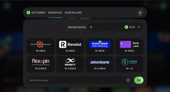 Für die Nutzung der Bonusangebote ist eine Mindesteinzahlung von 20€ erforderlich. Während ein Bonus aktiv ist, gilt eine Einsatzbegrenzung pro Spielrunde. Der maximale Einsatz liegt bei 5€ pro Runde. Gewinne, die direkt aus einem Einzahlungsbonus entstehen, unterliegen zudem einem festgelegten Gewinnlimit. Dieser ist auf das 10-fache des erhaltenen Bonusbetrags begrenzt.