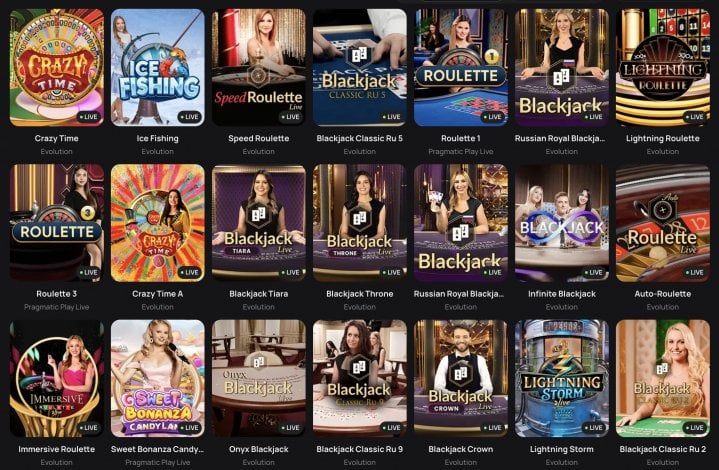 Der Live Casino Bereich ist breit aufgestellt und alle bekannten Spielehersteller sind hier vertreten. Dazu zählen Evolution Gaming, Pragmatic Play Live, Amusnet Interactive, Winfinity, Lucky Streak sowie ICONIC21. Inhaltlich liegt der Fokus klar auf klassischen Live Dealer Spielen. Kartenspiele wie Blackjack und Baccarat sind in zahlreichen Varianten vertreten und werden durch eine solide Auswahl an Roulette Tischen ergänzt. Sowohl europäische als auch weitere bekannte Roulette Spiele sind verfügbar.