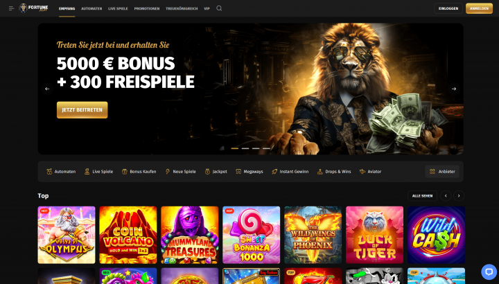 - Einzahlung: 75% bis zu 1.500€ und 100 Freispiele (Bonuscode FORTUNE4)