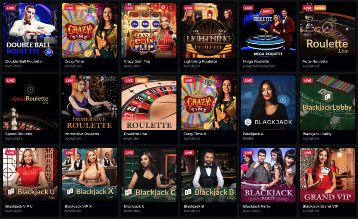 Double Ball Roulette, Crazy Time, Infinite Blackjack, Super Sic Bo, Lightning Dice