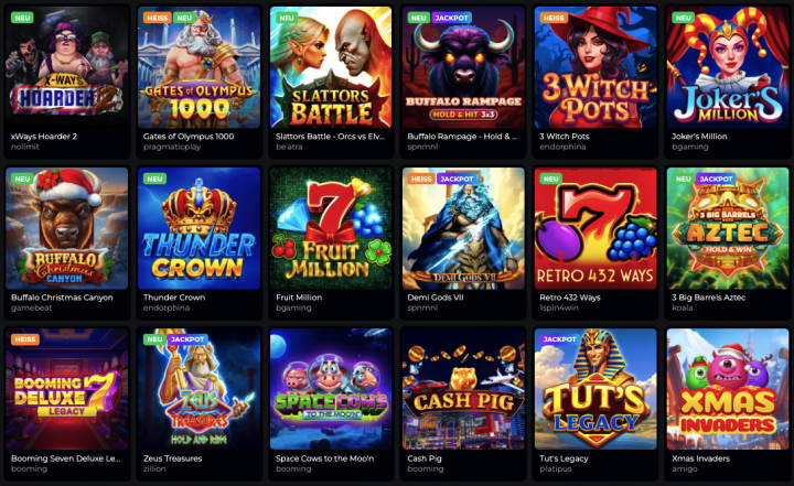Die Navigation ist logisch aufgebaut. Spiele lassen sich nach Kategorien wie Slots, neue Spiele, hoher RTP, Live Casino oder Jackpot Spiele filtern. Zusätzlich erleichtern Suchfunktion und Anbieterübersicht das gezielte Finden bestimmter Spieltypen. Aktuelle Gewinner und Top-Gewinner werden prominent angezeigt und schaffen Transparenz sowie eine lebendige Atmosphäre auf der Seite.