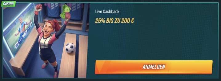 Einmal wöchentlich am Montag kannst du zudem beim Kundendienst einen Live Casino Cashback Bonus beantragen. Sofern du in der Vorwoche im Live Casino Verluste gemacht hast, werden dir 25% bis maximal 200€ erstattet. Der Cashback Bonus muss einmal umgesetzt werden.
