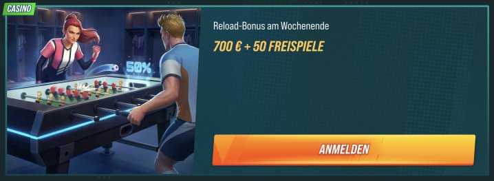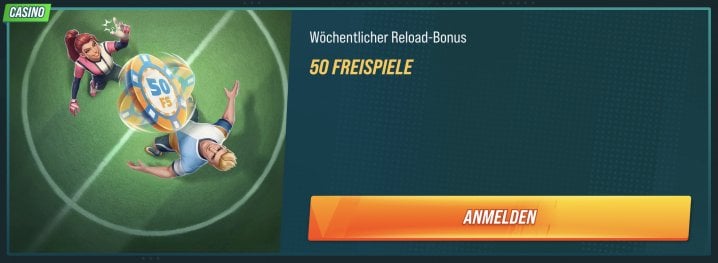 - 50 Freispiele - wöchentlicher Reload Bonus