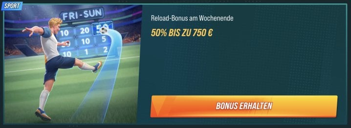 Jeweils zwischen Montag und Donnerstag kannst du mit einer Einzahlung von mindestens 20€ den Reload Bonus nutzen und sicherst dir damit 20 Freispiele.