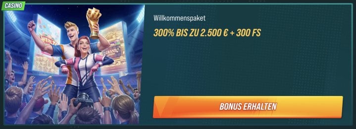Wenn dich das Bonuspaket anspricht, kannst du dir jetzt bis zu 2.500€ und 300 Freispiele oder alternativ bis zu 3.000 USDT Krypto Bonus sichern und das Angebot selbst testen.