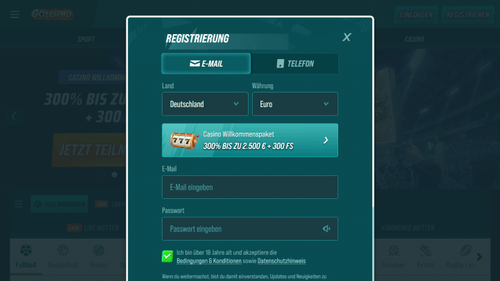 In nur wenigen Schritten ein neues Golisimo Casino Spielerkonto anlegen und mit dem Bonus durchstarten