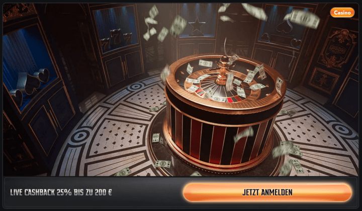- Live Casino Cashback: 25% bis zu 200€
