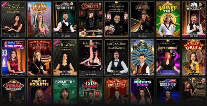 Ruby Blackjack, Gold Saloon Roulette, One Blackjack, Speed Baccarat, Lightning Roulette - Beliebte Live Game Shows
