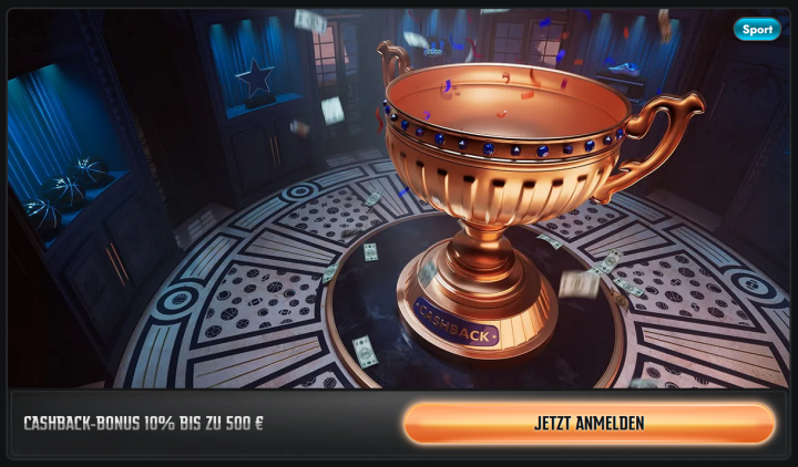 Für Sportwetten gibt es ebenfalls einen Cashback von 10% bis zu 500€, der immer montags unter „Meine Boni“ aktiviert werden kann.