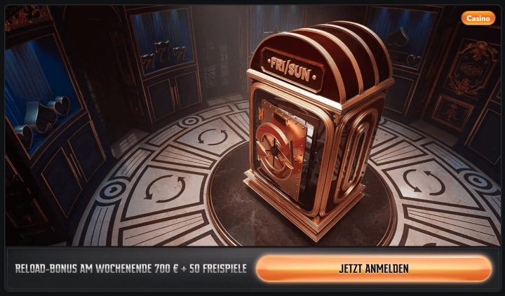- Einzahlungsbonus am Wochenende mit 50% bis zu 700€ und 50 Freispiele