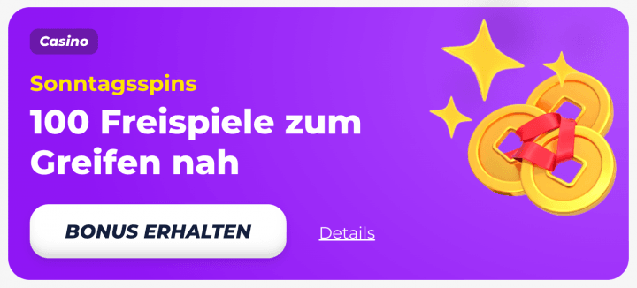- Sonntag – Sonntag Spins mit bis zu 100 Freispielen