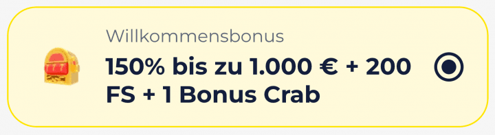 - Exklusiver Willkommensbonus – 150% bis zu 1.000€ sowie 200 Freispiele und 1 Bonus Crab