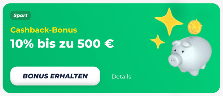 Für deine Nettoverluste der Vorwoche bei Sportwetten kannst du ebenfalls ein Cashback erhalten. Die Gutschrift musst du wie im Live Casino beim Kundenservice am Montag anfordern. Der Mindestbetrag liegt bei 20€ und damit du das Guthaben freispielen kannst, musst du den Betrag 3-mal umsetzen.