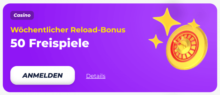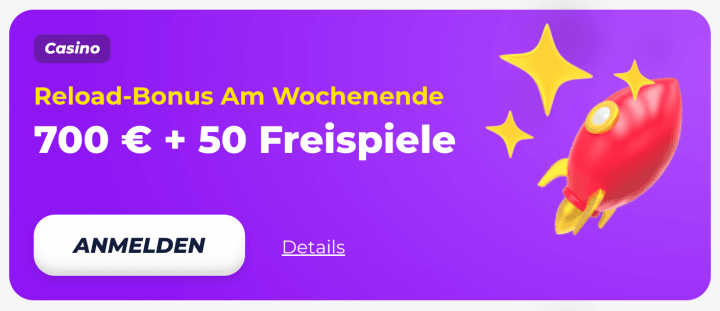 - Freitag bis Sonntag – Reload-Bonus mit 50% bis zu 700€ und 50 Freispielen