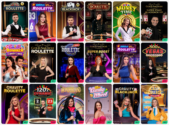 Du findest neben den klassischen Tischspielen wie Roulette, Blackjack und Baccarat auch viele Live Game Shows, die in den letzten Jahren immer beliebter geworden sind. Dabei kannst du dein nächstes Spiel einfach mit den vorhandenen Kategorien finden.