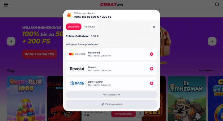 Verfügbare Zahlungsmöglichkeiten im GreatWin Casino: