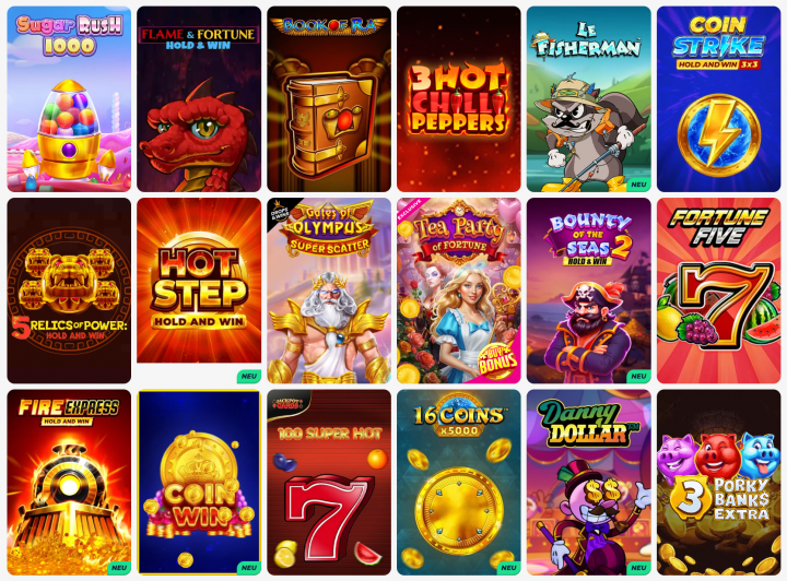 Das Spielesortiment ist umfangreich und du kannst viele verschiedene Themen finden. Neben den Spielautomaten stehen dir für deine Unterhaltung auch noch Live Casino Spiele und Sportwetten zur Verfügung. Du kannst auf eine Auswahl von über 120 Spieleherstellern zugreifen und dabei finden sich renommierte Studios wie Pragmatic Play, Smartsoft Gaming, Hacksaw Gaming, Booming Games, Betsoft, Kalamba Games, Red Rake Gaming, Quickspin, Playson, Thunderkick und viele mehr.