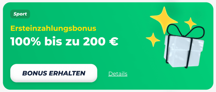 - Sportwetten Willkommensbonus – 100% Bonus bis zu 200€