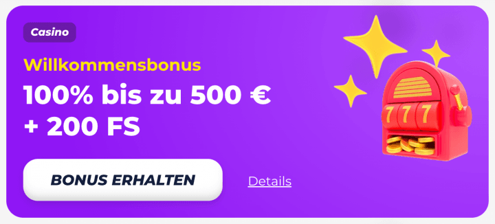 - Casino Neukundenbonus – 100% bis zu 500€ und 200 Freispiele