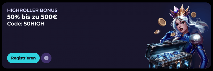Mindesteinzahlung: 300€, Code: „50HIGH“