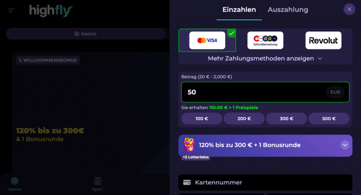 HighFlyBet Casino Zahlungsmethoden, Auszahlungsdauer und Limits