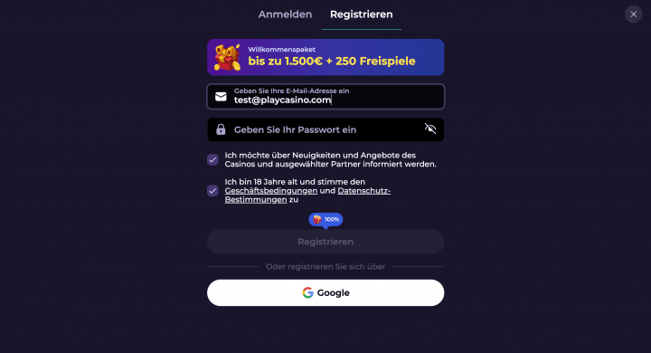 - Verwende am besten unseren Link, damit du direkt zum HighFlyBet Casino weitergeleitet wirst. Für gewöhnlich startet die Registrierung automatisch oder du klickst oben rechts auf „Registrieren“, um das Anmeldeformular zu öffnen.