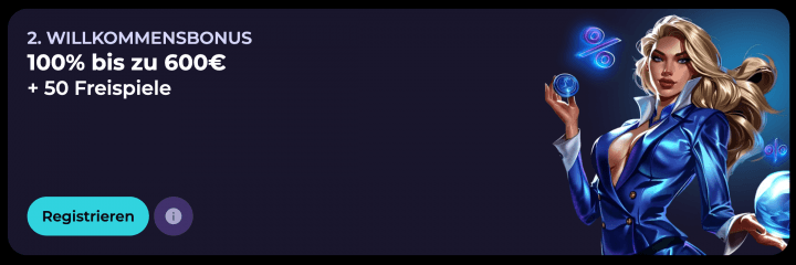 - 2. Casino Willkommensbonus - 100% bis zu 600€ und 50 Freispiele