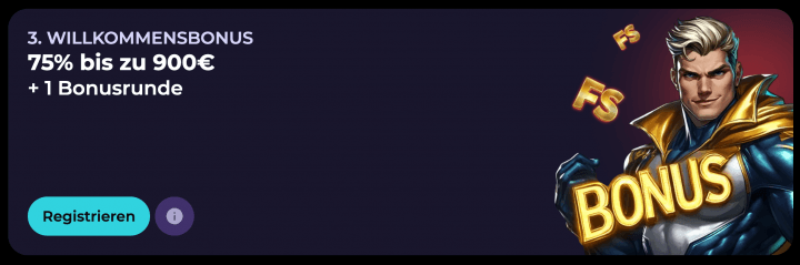 - 3. Casino Willkommensbonus - 75% bis zu 900€ und 1 Bonusrunde