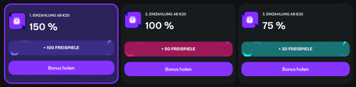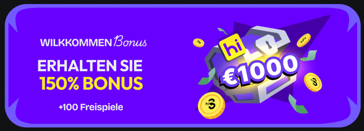 - 1. Willkommensbonus - 150% bis zu 1.000€ und 100 Freispiele