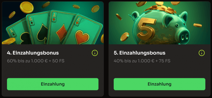 - 4. Einzahlungsbonus - 60% bis zu 1.000€ und 50 Freispiele