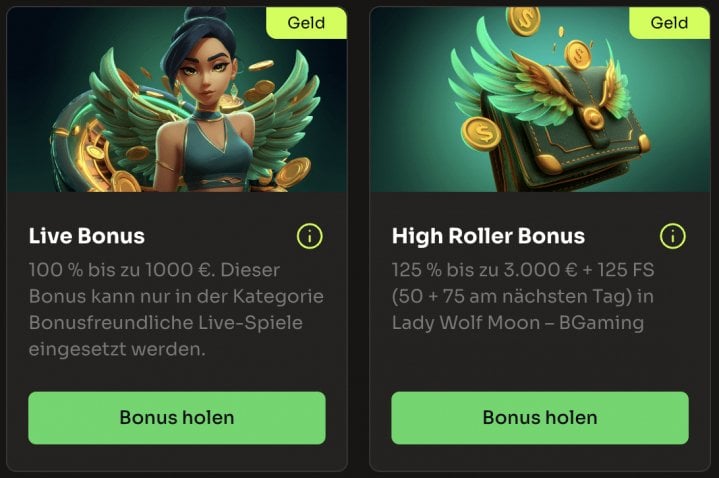 Erfreulich ist dabei, dass du dir auch einen Einzahlungsbonus für das Live Casino sichern kannst. Hierbei handelt es sich um einen 100% Live Casino Bonus von bis zu 1.000€. Ein spezieller High Roller Bonus fehlt dabei auch nicht, und neben 125% bis zu 3.000€ werden dir zusätzlich noch 125 Freispiele gutgeschrieben.