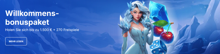 Mit einer Mindesteinzahlung von 10€ können Spieler bei deiner Ersteinzahlung direkt von einem Willkommensbonuspaket profitieren. Du kannst dadurch bei deinen ersten drei Einzahlungen bis zu 1.500€ und 270 Freispiele erhalten. Aber auch als Bestandskunde stehen dir und anderen Spielern verschiedene Bonusaktionen zur Verfügung.