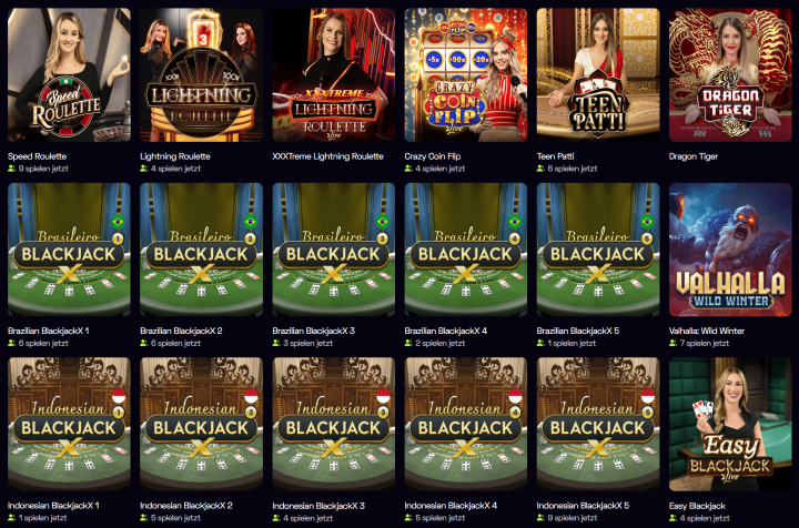 Live Casino, Tisch- und Kartenspiele und Game Shows mit echten Dealern