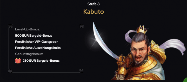 Zusätzlich gibt es noch einen Shop für deine Treuepunkte. Die KatsuPoints (KP) sammelst du mit Echtgeldeinsätzen und bei jedem Levelaufstieg wartet eine Belohnung auf dich. Im Shop kannst du die Punkte dann gegen Freispiele oder Bonusguthaben einlösen.
