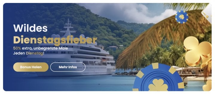 Zusätzlich zu den Bonusangeboten kannst du eine wöchentliche Belohnung erhalten. Diese besteht aus Freispielen oder einem Guthaben. Basierend auf der Anzahl deiner Einzahlungen der Vorwoche wird die Belohnung festgelegt. Eine Übersicht hierzu findest du auf der Aktionsseite zur wöchentlichen Meeresbrise. Neben den Aktionen für die Spielautomaten kannst du dir auch Boni im Live Casino sichern. Hierbei solltest du ebenfalls auf die Bonuscodes achten, damit die automatische Gutschrift nach der Einzahlung erfolgt.