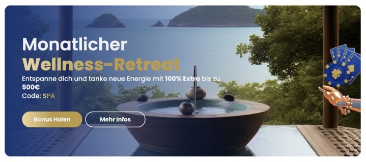 - 1x monatlich – 100% bis zu 500€, Code: „SPA“