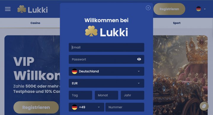 - Am besten nutzt du unseren Link und wirst auf direktem Weg zum Lukki Casino weitergeleitet. Die Anmeldung sollte automatisch starten.