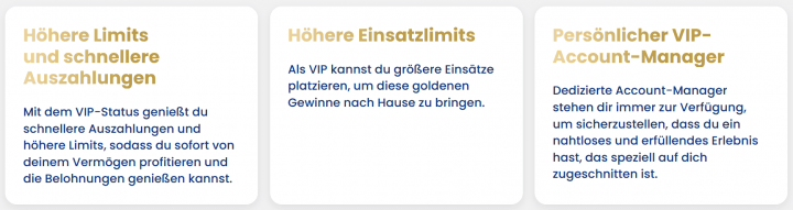 Eine Auszahlungsanfrage wird in der Regel innerhalb von 48 Stunden bearbeitet. Die Ein- und Auszahlungslimits können für VIP-Spieler abweichen und individuell durch den VIP-Manager erhöht werden.